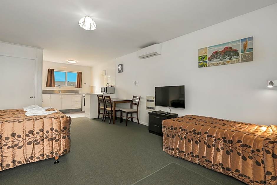 This spacious accessible studio room features air-conditioned accommodations offering 1 queen bed with electric blankets. The wet floor bathroom facilities provide easy access with a roll in shower, seat, hand rails and toilet. Additional room amenities also include Unlimited WiFi, Kitchenette facilities with fresh milk, dining table, sitting area and a smart TV.